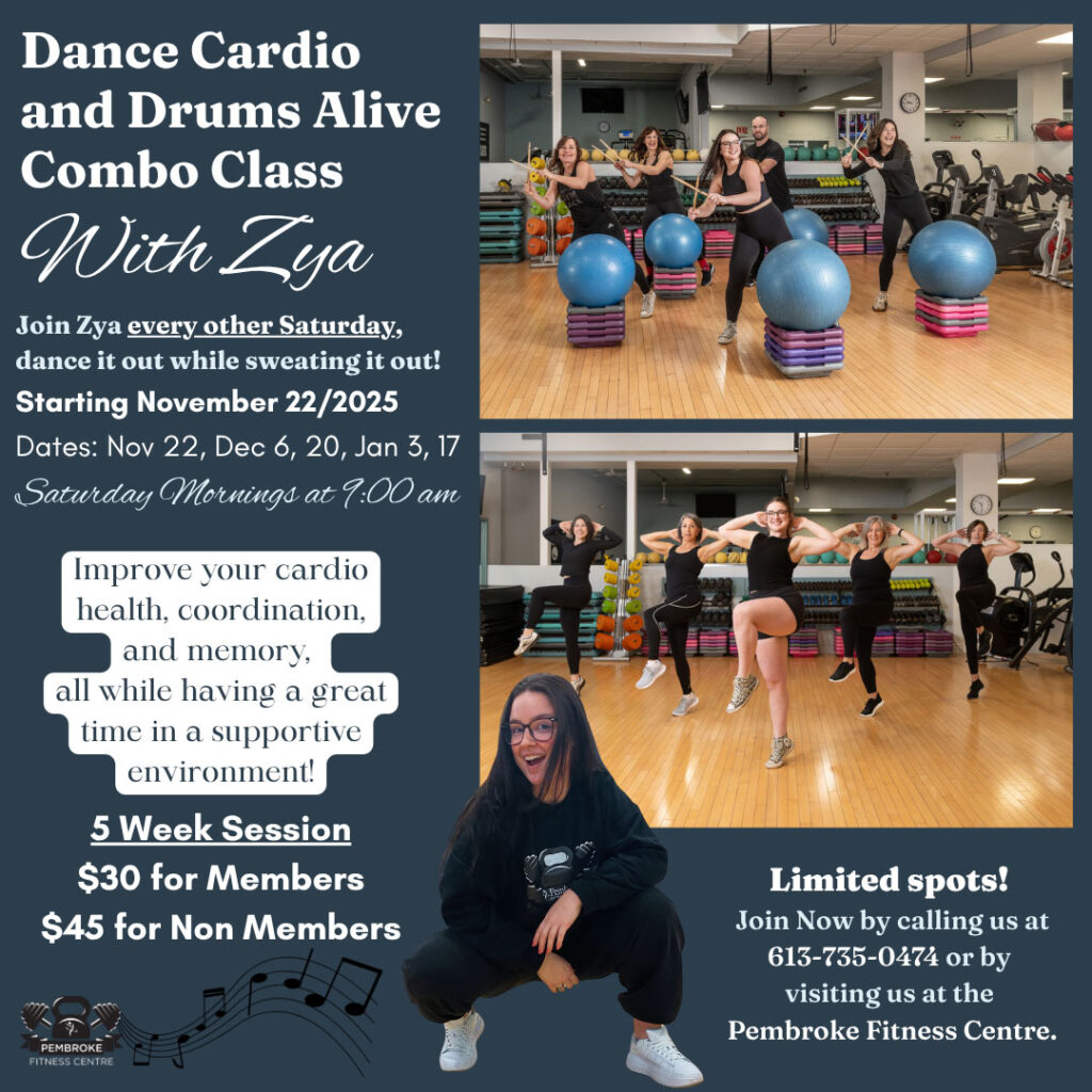 To book Drums Alive please book online contact the Pembroke Fitness Centre 613-735-0474.